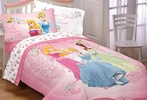 Dream of Enchanted fairy tales with the Disney Princesses. The sheet set has a pink fitted sheet white ground flat sheet and reversible pillowcase. This soft 100-Percent microfiber sheet set is machine wash and dry.